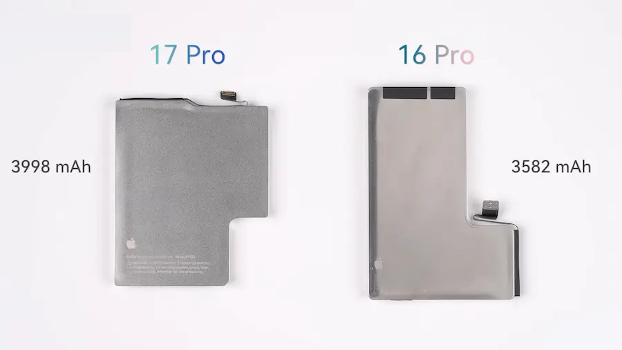 不过今年iPhone 17 Pro 系列还有一点小差异,只要是保留实体SIM 卡槽机型,所以电池体积比纯eSIM 卡iPhone 17 Pro 美版或日版略小,这也再次验证,苹果针对国际不同区域版本在设计上还是会有差异。